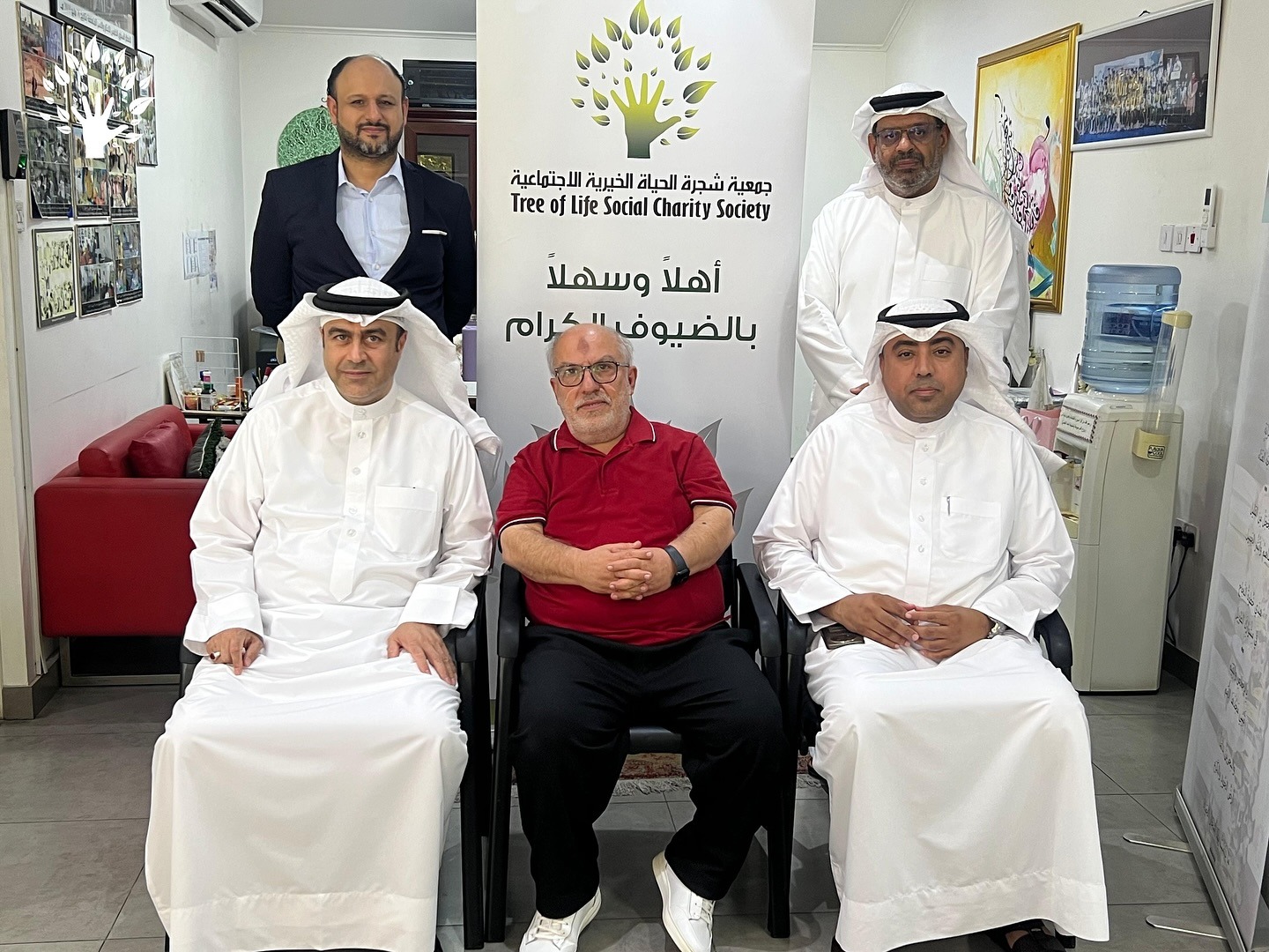As part of joint cooperation and exchange of expertise between civil society organizations, the Tree of Life Social Charity Association received a delegation from the Ali Charity Association at its headquarters in Saar. The delegation consisted of Chairman of the Board of Directors, Aqeel Abdul Rasool Ibrahim, Vice Chairman, Hussein Mohammed Ali Abdullah, Secretary, Yousef Ahmed Ibrahim Al-Asmakh, and Board Member, Mohammed Hussein Mohammed Al-Ali, from the Academic, Vocational and Employment Empowerment Committee. The visit was a friendly visit on Saturday, September 20, 2025. The visit aimed to strengthen communication ties and learn about the experiences and service and social programs offered by the two associations to serve members of the community. The delegation was received by the Chairman of the Board of Directors, Engineer Khalil Al-Dailami, and a number of executive office employees. During the meeting, Tree of Life Association officials presented an overview of its most prominent projects in the areas of caring for orphans and needy families, training and rehabilitation programs, and development initiatives that support family and social stability. The visiting delegation was also briefed on the association's future plans to enhance the impact of charitable work and expand the circle of beneficiaries. For their part, representatives of the A'ali Charity Society expressed their appreciation for the organization and innovation they saw in the Tree of Life projects, affirming their commitment to building bridges of cooperation and exchanging ideas that contribute to the development of humanitarian and service work in the Kingdom of Bahrain. At the end of the visit, group photos were taken in a friendly atmosphere that reflected the spirit of joint work and the desire to achieve integration among charitable societies to serve the nation and society.