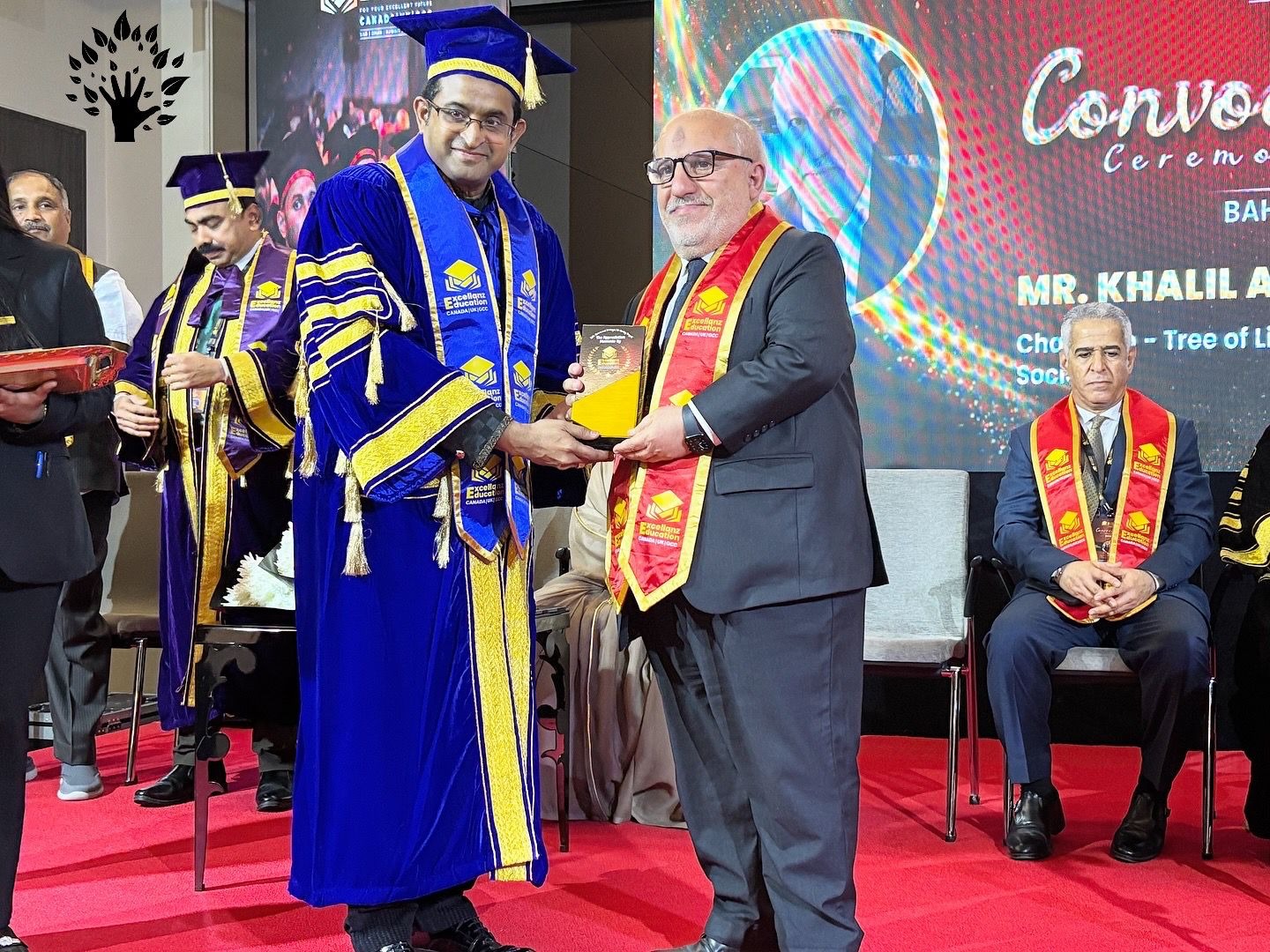 On Friday, November 14, 2025, the Tree of Life Charitable Social Society participated in the annual Convocation Ceremony 2025, organized by Excellanz Education at the Westin City Centre Hotel in Bahrain. The Society's Chairman, Engineer Khalil Al-Dailami, was invited as a guest of honor, along with a distinguished group of officials and community figures. He was accompanied by Society staff members Ms. Sadiqa Rabee and Mr. Ali Matar.
